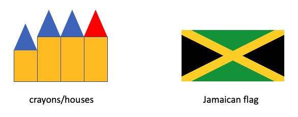 Pick one of the two images below. Without coding it, write a list of steps and action items that describe, in words, how to recreate your image (imagine that you were trying to get a child to draw the image from your steps) starting from basic shapes. Use any terms you want to describe the steps: you don’t have to stick to names of operations that exist in Pyret or concepts that we’ve covered in class.